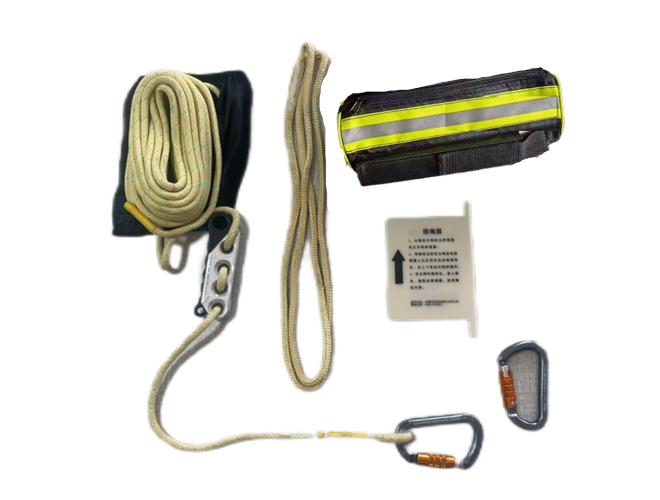 套装构成 | 应急逃生自救安全绳1根、绳包1个、安全钩2个、下降器1个、扁带1条、排绳器1个。 | |
