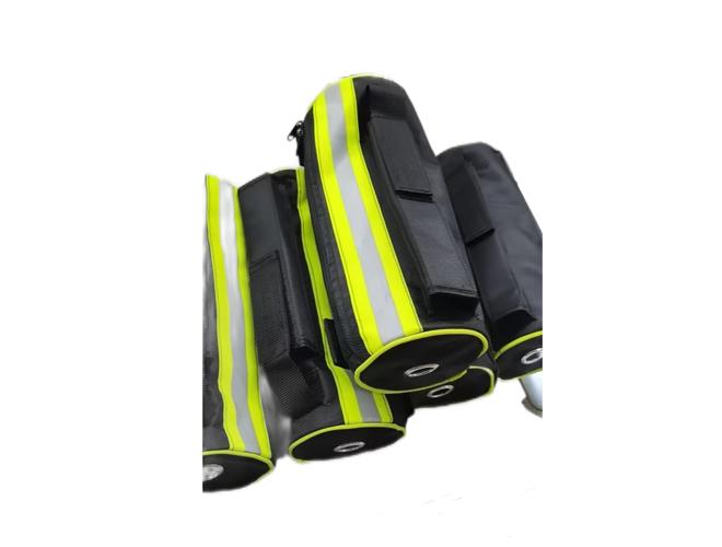 7.每根绳长度20m,绳质柔软,绳的两端应妥善收尾,宜采用绳环结构,并用同种材料的细绳扎缝50mm,在扎缝处热封,扎缝处包以裹紧的橡胶或塑料套管,在绳尾处采用热封方式标注永久性标签内容。绳包能与消防员安全腰带配套使用,绳包尺寸为长25㎝、宽15㎝。带有下降止锁器及两段自锁式D型安全钩与安全绳适配使用。
